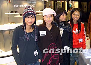 香港流行音乐组合Cookies为品牌眼镜宣传。一个品牌眼镜5日展示2004年春夏眼镜系列,香港流行音乐组合Cookies 出席记者会为其宣传。中新社记者:谭达明  香港艺人杨婉仪5日在一品牌眼镜记者会时,戴上新款眼镜。中新社记者:谭达明