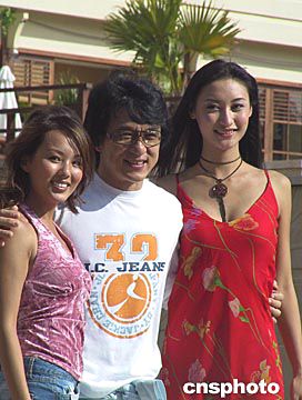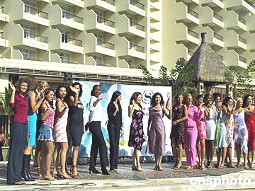 参加第五十三届世界小姐总决赛的佳丽6日下午三时半出征,评委成龙为佳丽们鼓气。作者:关向东