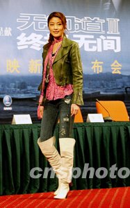 陈慧琳出席无间道北京记者见面会。中新社记者:郑萍萍