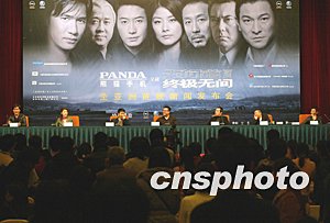 《无间道Ⅲ》将于十二月八日晚在北京人民大会堂首映。包括刘伟强、麦兆辉、黄秋生、粱朝伟、刘德华、黎明、陈慧琳在内的主创人员出席了早先的记者见面会。中新社记者:郑萍萍