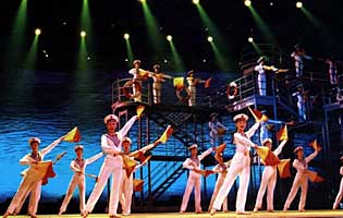 投资数百万元,由海军政治部歌舞团和海军政治部电视艺术中心经历3年精心打造的我国首部反映当代海军题材的大型原创音乐剧新作《赤道雨》昨天在海军礼堂与观众见面,其中首次跨越民歌参与音乐剧演唱的著名女高音歌唱家宋祖英在舞台上的形象分外抢眼。
