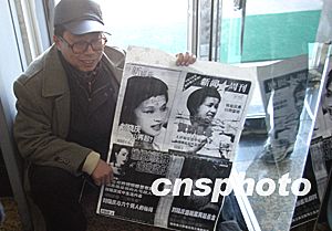 来自四川的刘晓庆的老乡在法庭外支持刘晓庆。中新社记者:盛佳鹏