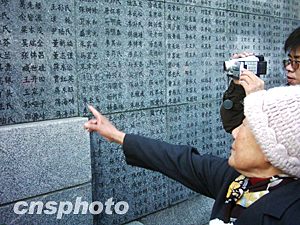 今天,在南京的十多个大屠杀纪念碑所在地,都同时举行了悼念活动。