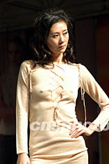 第二届中国(大朗)国际毛织产品交易会十三日在广东东莞大朗镇新落成的中国大朗毛织贸易中心开幕,首场品牌发布会上,模特儿穿着薏莎品牌向人们展示该品牌的最新服装。作者:罗仰明