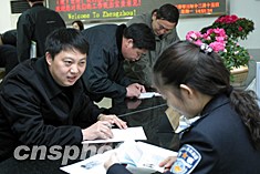 十二月十五日,几名市民正在郑州市公安局出入境管理处办理赴港澳的证件。来自郑州市公安局出入境管理处的数字显示,随着春节的临近,前来办理出境旅游手续的民众与日俱增。作者:慎重