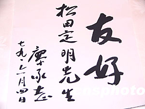 松田先生的职业是医院放射线技师,二十五年前的十月二十八日,他在新婚仪式负责摄影。在同一饭店举行的欢迎宴会即将结束时,邓小平夫妇得知隔壁会场正在举行婚礼,临时提出参加祝贺。激动人心的一幕出现十分钟前,现场才通知这一消息,婚礼与会者兴奋起来了。等候在饭店外的记者虽获知消息,但无奈不能进入,现场摄影师只有两名。松田在关键时刻一气拍下二十多张照片。一张题为《友好的巧遇》的照片,当月获得《读卖新闻》读者摄影作品月度一等奖,当年又获得该报年度摄影比赛头等奖。《读卖新闻》摄影部部长田中秀男评价说:“这幅照片有力地说明了邓副总理坦率的人品和日本国内的日中友好热潮,是一个富有人情的记录”。第二年,在当地华侨的帮助下,松田又得到廖承志挥毫提写的“友好”二字墨宝。