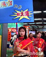 十二月十九日,在北京国贸中心举行的冬季房展会上,售房小姐手持“购房抽大奖”的牌子在展厅中穿梭。房地产商希望通过这种方式推动楼盘销售。作者:张雷