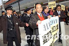 香港九广西铁12月20日正式通车,有团体在启用仪式会场拉起横幅要求九广西铁增加设施方便市民出入。中新社记者:洪少葵