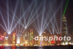 香港“幻彩咏香江”十二月二十日举行预演,“幻彩咏香江”是一项世界级的多媒体灯光音乐汇演,以维多利亚港沿岸的多幢名厦为焦点,配合交互式的灯光音响效果和旁述,把香港的故事娓娓道来。图为“幻彩咏香江”五彩缤纷。中新社记者:钱兴强