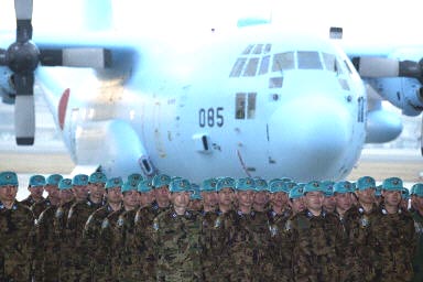 被日本有关方面认为在安全上较有把握的航空自卫队先行前往之后,将进行短时期的适应训练,而后以设在科威特的航空基地为据点,在伊拉克的巴士拉等机场之间执行相关物资的运输任务。其派遣规模为三架大型一三0军用运输机和二百多名航空自卫队员。