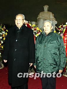 十二月二十六日上午,82岁的原中共中央主席华国锋和夫人到北京毛主席纪念堂纪念毛泽东诞辰110周年。中新社记者:任晨鸣