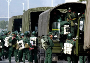 图:武警开赴“12·2 3”井喷事故抢险救灾现场