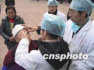医务人员连日为受伤者检查眼睛等受伤处。作者:邹辉