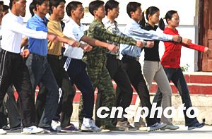 靠近中国的越南一家宾馆员工,二十七日接受军事化训练以提高行业规范化服务,为新年旅游高峰做准备。中新社记者:宋吉河