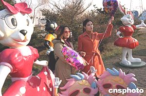 元旦、春节即将来临,北京石景山游乐园近期增设了卡通乐园,许多形象逼真可爱的卡通将成为小朋友的新爱。中新社记者:任海霞