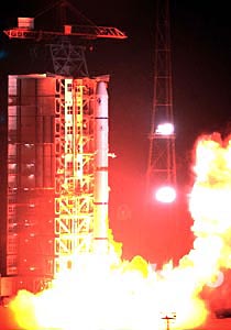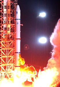12月30日凌晨3时06分,长征二号丙改火箭拖着耀眼的尾焰刺破夜空,十多分钟后,探测一号卫星被送入预定轨道。至此,2003中国航天年圆满地划上了句号。2003年,中国成功发射了六颗卫星和一艘载人飞船。中新社记者:张炜