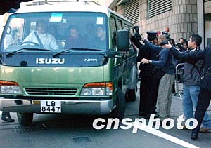 香港艺人梅艳芳因子宫颈癌导致肺功能失调,于十二月三十日凌晨二时五十分在香港病逝,三十日中午梅艳芳遗体由养和医院送往香港殡仪馆。中新社记者:钱兴强