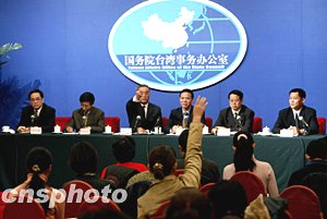 中新网12月31日电 国务院台湾事务办公室今日(31)上午在北京的钓鱼台大酒店举行了本月例行新闻发布会,这也是2003年度国台办最后一次的新闻发布会,国台办发言人张铭清主持了此次发布会。