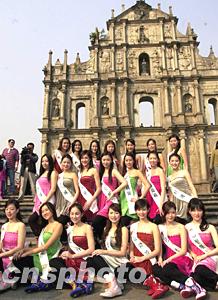 佳丽们游览大三巴。作者:李刚