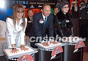 1月5日,香港举行《星光大道》打手印仪式,三位曾为香港影坛作出贡献的影星杨紫琼、导演吴宇森、息影女星于素秋为香港《星光大道》打手印。作者:邓庆乐