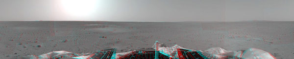 “勇气”号发回首张火星三维全景图像