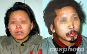 一月六日,北京警方举行新闻发布会,宣布对涉嫌非法集会游行示威者孙舒萍、吴大明、张尚中、赵凤材等人依照法律规定予以逮捕或刑事拘留。图为经北京市东城人民检察院依法批准逮捕的孙舒萍(左)和吴大明(右)。作者:京芳