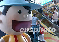 第三十届香港玩具展元月六日在香港会展中心开幕,吸引全球众多玩具商参展,图为醒目的卡通形象引人注目。中新社记者:钱兴强