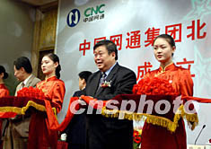 一月八日,中国网通集团北方通信有限公司正式挂牌运作,网通集团总经理兼网通北方董事长张春江在北京为公司成立剪彩。网通南方通信有限公司将于近期在上海成立。中新社记者:张宇
