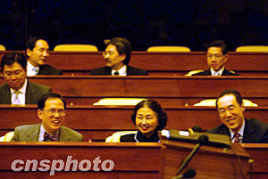 香港政务司长曾荫权、律政司长梁爱诗、财政司长唐英年,1月8日出席立法会旁听特首董建华答复议员就施政报告所提出的质询。作者:洪少葵