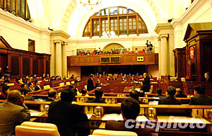 香港特区行政长官董建华1月8日出席立法会答问大会,响应议员有关政制检讨的问题时强调,政府不会拖延政制问题。作者:洪少葵