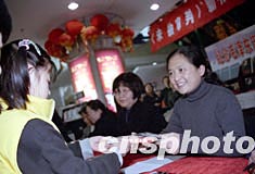 一月九日,中央编译出版社新近出版的《未被审判——中国民间对日索赔纪实》在北京西单图书大厦举行作者赵冬苓(右二)签名售书活动,对日民间索赔的著名人士王选(右)来到现场做主题演讲并签售此书。作者:徐曦弋