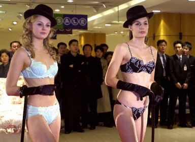 1月12日,模特在韩国首都汉城举行的2004时尚内衣展示会上表演。