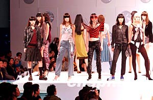 模特1月13日在香港举行的“香港时装节秋冬系列2004及香港国际时尚荟萃2004”上,为剪彩嘉宾演绎设计师的参展服饰。