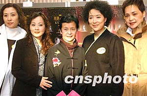中国著名浙江小百花越剧团元月十五日在香港举行新闻发布会,推出新版越剧《陆游与唐琬》,图为剧中主要演员和导演在发布会上。作者:钱兴强