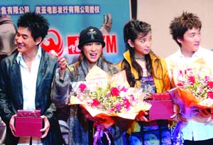 而任贤齐则是当天得到女FANS欢呼声最多的明星。虽然衣着普通,但是小齐一开口,还是不改幽默本色。他说:“这是我第一次拍动作时装片,以前古装动作片拍多了,动不动就会出来剑指。这次我在片中有扮女人的戏分,在里面我不仅要穿裙子、还要穿高跟鞋。杨紫琼就教我怎么把裙子穿得好看。我在戏里的功夫比她稍微弱一点点,但还是要被她打,幸好胸部有衬垫,被打也不痛。另外我要感谢导演,给了我一头金色假发,让我有机会扮洋妞。不过却有一个不好的结果,我晚上上厕所的时候差点不知道该上男厕还是女厕。”(记者陈弋弋)