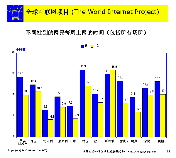 各国用网状况:不同年龄、性别网民每周上网时间