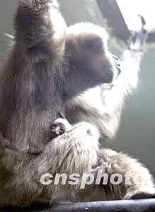 组图:高龄白眉长臂猿“帅帅”喜得贵子