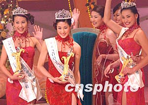 中新网1月18日电 “2004年度国际华裔小姐竞选”昨晚在香港将军澳电视广播城举行,来自温哥华的钟嘉欣以黑马姿态胜出,勇夺冠军。香港的曹敏莉也不负众望,夺得亚军及友谊小姐;季军及“笑靥花容小姐”奖项则由来自马尼拉的洪巧玲夺得。