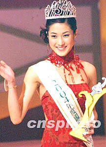 应届港姐曹敏莉一月十七日晚在香港举行的2004年度国际华裔小姐竞选决赛上获得亚军。作者:钱兴强