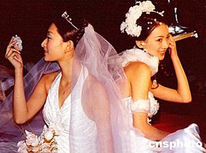 春节前夕,两名身着婚纱的少女在重庆市举行的“金夫人模特”摄影比赛中,合作摆出动人"甫士",展示妩媚风韵。作者:周会