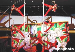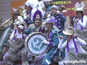 为迎接中国农历新年的到来,香港举办“2004国泰航空新春国际汇演”,在一月十九日举行的发布会上,来自澳洲“手舞足蹈活力乐队”进行表演。