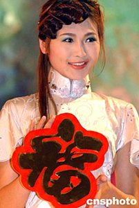 中国传统农历新年将至,中国各地呈现出一派过年气氛,在一台时装展示会上模特手捧新春福字喜气洋洋向人们祝福。作者:钱兴强