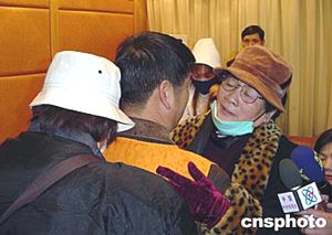 元月20日,台湾涉嫌间谍王长勇在福州与来探视的母亲等家人相拥会面。作者:陈国明