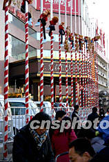 猴年春节期间,山东济南的商家大打“猴子”牌,地处闹市区的内地与香港合资四星级酒楼玉泉森信大酒店,为招徕顾客,在店前一排金属旗杆上点缀上十几个憨态可掬的吉祥猴。作者:王鲁平