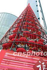 二十六日,一座由百余只大红灯笼组成的巨型灯塔竖立在上海街头,给节日里的申城增添了不少喜庆的色彩,吸引路人驻足观望。作者:汤彦俊