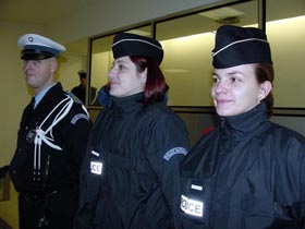 为胡主席“保驾”的法国女警(吴蔚中摄)