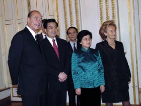 二十六日晚,法国总统希拉克和夫人在爱丽舍宫举行国宴,欢迎胡锦涛主席伉俪