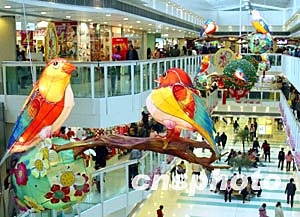 尽管禽流感袭击亚洲诸多城市,但是香港一些商场依然用缤纷璀璨的禽鸟灯饰来装饰即将来临的元宵佳节。作者:潘索菲