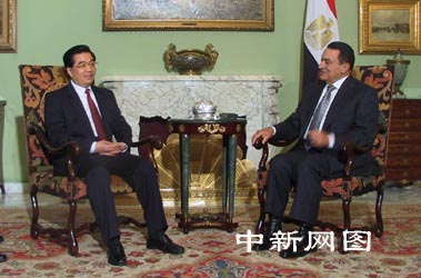 在随后的会见中,穆巴拉克对胡锦涛的来访表示热烈欢迎。他说,埃中人民有着传统的友谊。我本人同毛泽东主席、邓小平先生、江泽民先生等三代领导人都有交往,对中国人民抱有友好感情。埃中两国在许多领域进行了富有成果的合作。