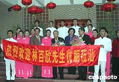 香港丽新集团董事局主席林百欣一月三十日抵达广东汕头,受到热烈欢迎。一月三十一日他将参加在此地举行的林百欣奖教奖学金发放仪式。林百欣先生多年来捐资六亿多元,在内地兴办公益事业、教育事业。作者:王惠存